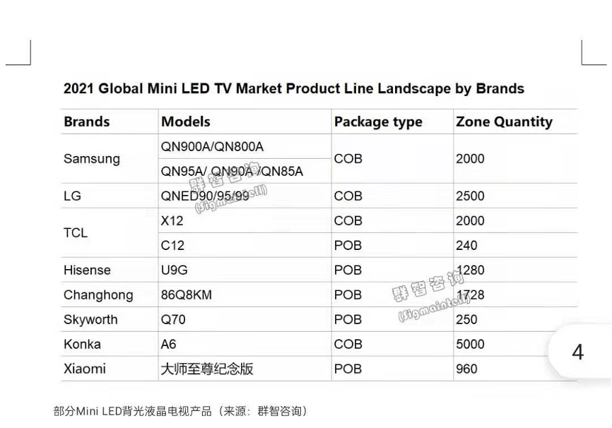 部分Mini LED背光液晶電視產(chǎn)品(來(lái)源:群智咨詢(xún))