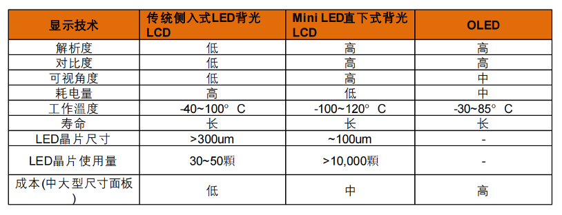 不同背光技術(shù)與OLED對比